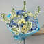 Изысканный букет, где пышные соцветия голубой гортензии переливаются, как морская гладь, дополненные нежными веточками душистой маттиолы и хрустальной чистотой белых кустовых роз. Композиция, словно сотканная из прохлады ночного сада, дарит ощущение свежести и романтической тайны. Идеален для мечтательных натур и особых моментов, когда хочется сказать «ты — моя гармония».