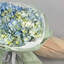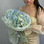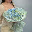 Нежная композиция из трёх пышных голубых гортензий с крупными соцветиями. Их насыщенный оттенок напоминает летнее небо или морскую гладь, создавая ощущение свежести и гармонии. Такой букет идеально подойдет для признания в любви, свадебного торжества или особого поздравления.