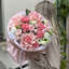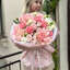 Нежный букет — симфония текстуры и цвета. Пышные соцветия гвоздики в розовом оттенке создают насыщенный акцент, изысканные белые эустомы добавляют утончённости, роскошные розы «Эсперанса» формируют объём и торжественность, а фисташка вносит свежесть и природную естественность. Композиция отличается сбалансированностью: мягкие пастельные тона гармонично сочетаются с серебристой зеленью, а разные формы цветков дополняют друг друга, создавая целостный и выразительный образ.
