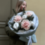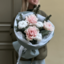 - Авторский букет №169 "Ласковый мороз" из розовых роз, нобилиса и хлопка