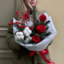 - Авторский букет №171 "Яблоки на снегу" из роз, нобилиса, хлопка и илекса