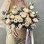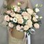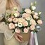- Композиция №172 в коробке персикового цвета из пионовидных роз и эустомы