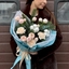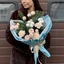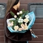- Авторский букет №177 "Морозный комплимент" из нобилиса, натурального хлопка, кустовых роз и нежных гвоздик