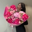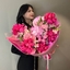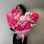 - Авторский букет №183 "Малиновый водопад" из роз, гортензий, альстромерий и диантусов