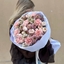 - Авторский букет №186 Авторский букет "Нюд" из кустовых роз, гвоздик и сантини
