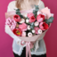 - Авторский букет №247 из тюльпанов, кустовых роз, диантусов и лизиантуса